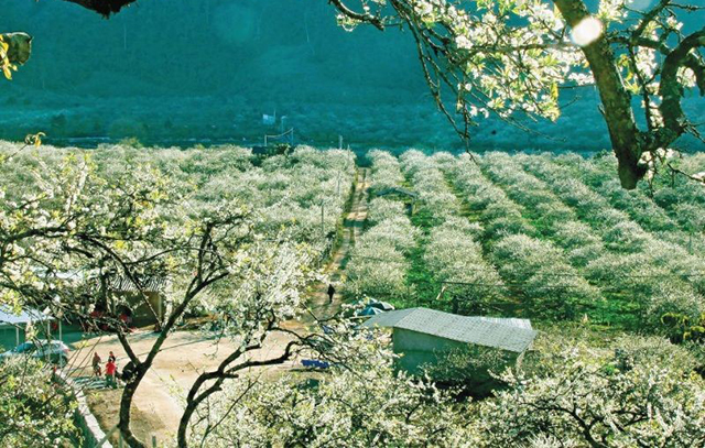Kà Na rất động khách du lịch vào đầu năm lên ngắm hoa mận trắng